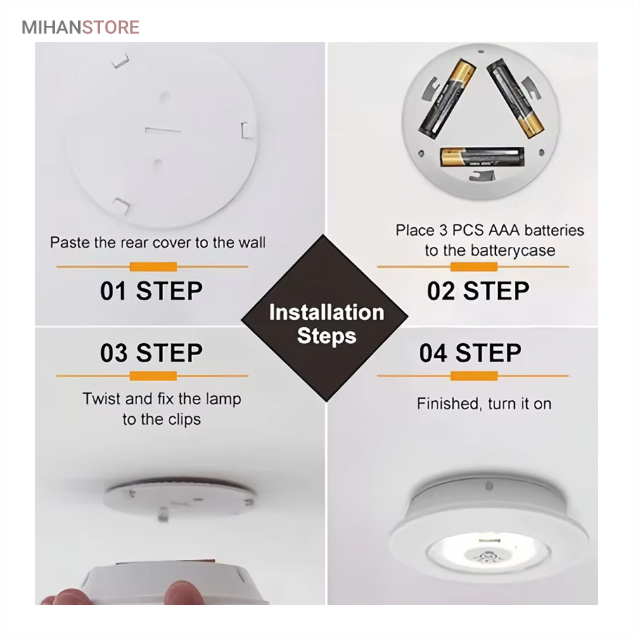 چراغها با استفاده از کنترل از راه دور با برد ۵ تا ۱۰ متر یا به صورت دستی از طریق فشردن قسمت مرکزی هر چراغ روشن و خاموش میشوند. در نتیجه حتی اگر چراغ در مکان مرتفع یا دور از دسترس نصب شده باشد بهراحتی میتوان از راه دور آن را کنترل کرد. طراحی بدون سیم باعث شده است که این چراغها برای نصب در هر مکانی مناسب باشند. نیازی به هیچگونه سیمکشی یا اتصال برق نیست؛ تنها کافیست ۳ عدد باتری AAA (برای هر چراغ) تهیه کنید و آن را در جای دلخواه بچسبانید.
